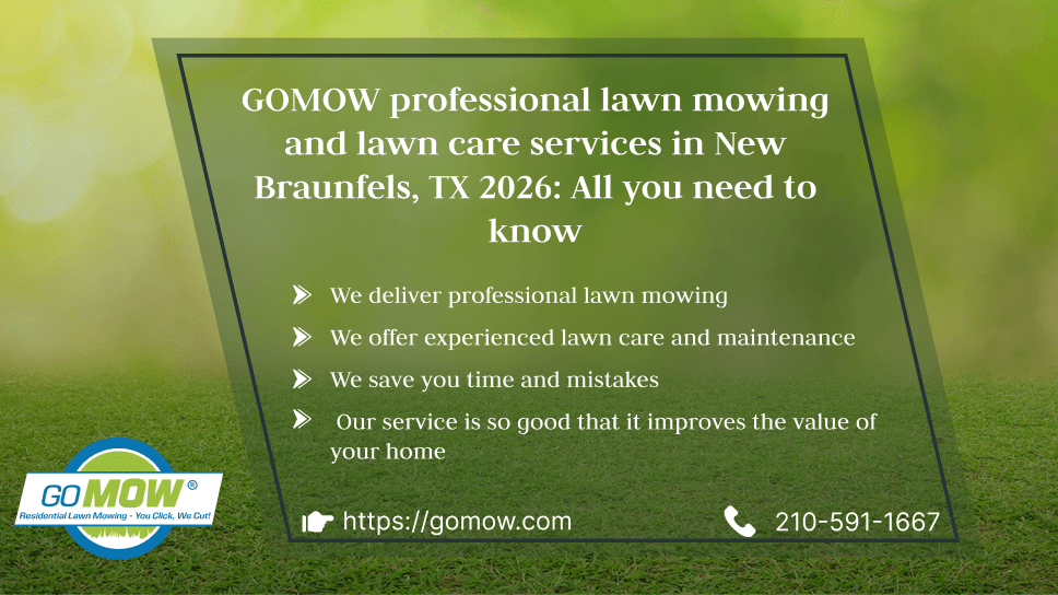 GOMOW Lawn Care Service, New Braunfels, TX will get you started with professional lawn mowing that’s designed to improve the look of your home lawn yard fast!