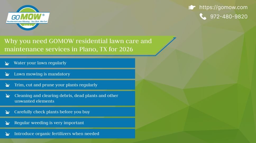 A lawn mowing service in Plano like GOMOW Lawn Mowing has the knowledge and expertise to deliver the best lawn care at an affordable cost. Most times, regular lawn care is what it takes to keep your lawn lush, healthy and green.